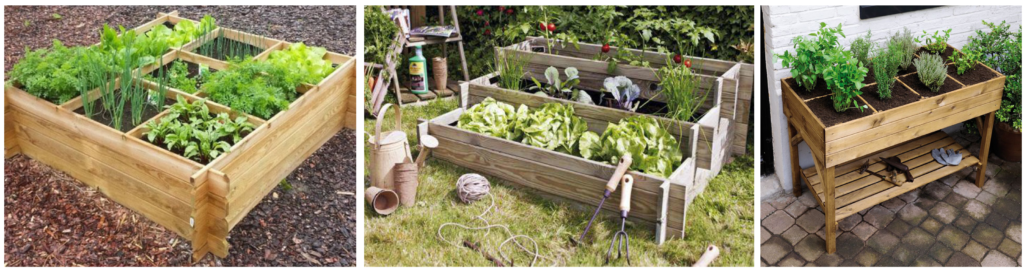 Potager en carré, en escalier et sur pieds
